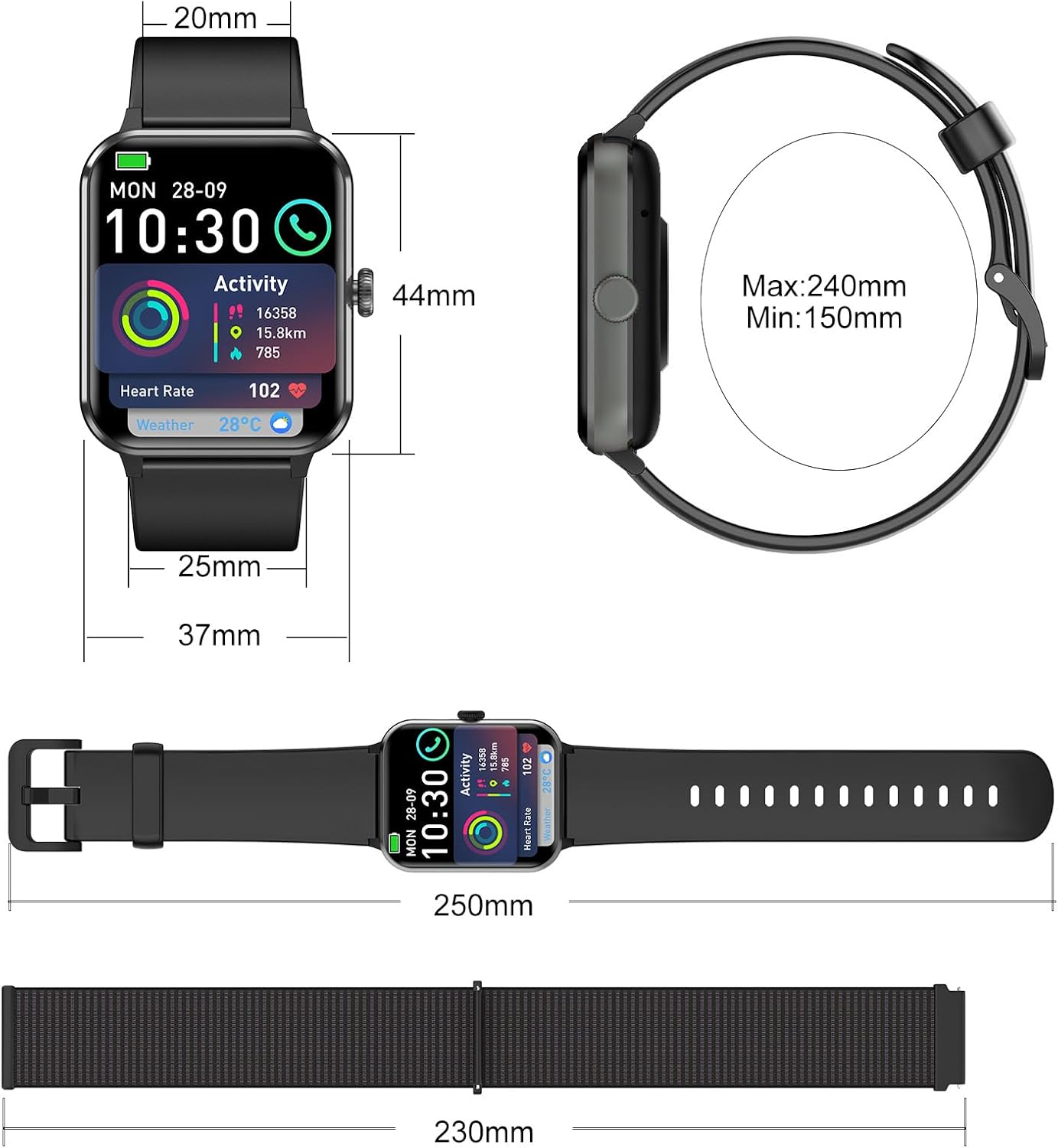 Peças para montagem ‎1 * SmartWatch (con Cinturino in Silicone) 1 * Cinturino di ricambio 1 * Caricatore USB 1 * Manuale Utente